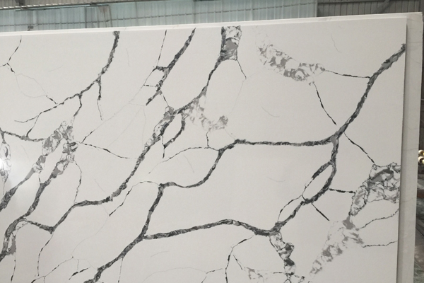 The surface of manufactured quartz depends on how the quartz material is ground: Coarsely ground stone produces a flecked appearance, while finely ground has a smooth look. Manufacturers have also created colors and patterns that mimic natural stone, such as marble and granite, and have even created cement appearance (an appealing option, since cement itself is prone to cracking, chipping, and staining). For high-end market of quartz slab engineering, customers prefer calacatta white look of quartz stone, which shows the beauty of natural calacatta marble stone slab.