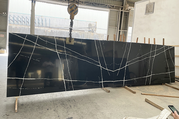 Regarding black quartz slabs, we have several types of calacatta black quartz colors with white veins, like Nero marquina design and with golden veins. The black quartz slabs are helpful in improving high-grade sense for kitchen and hotel. However, the reason why black quartz slab is more expensive is its difficulty in polishing. During polishing process, black quartz slab is easy to have some marks and other quality problems. To avoid these problems, we need to polish for several times, which raises up the production cost. Therefore, the general price of each quartz color depends on not only raw materials cost, but also the efficiency of manufacturing this quartz color. To improve this efficiency, we have different quartz manufacturing sites to manufacture certain quartz colors. In details, our Tianjin factory manufacture mainly simple quartz colors, while our Xiamen factory manufacture high-grade and difficult calacatta quartz slabs. With this arrangement, we could keep our products stable in quality and obviously improve our efficiency in production.