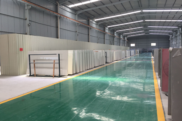 We have total three quartz slabs manufacturing sites with 2 of them in Quanzhou, China and another in Malaysia. Chinese sites have total 4 production lines, which can manfuacture generally 400 slab per day or 12000 slabs per month.